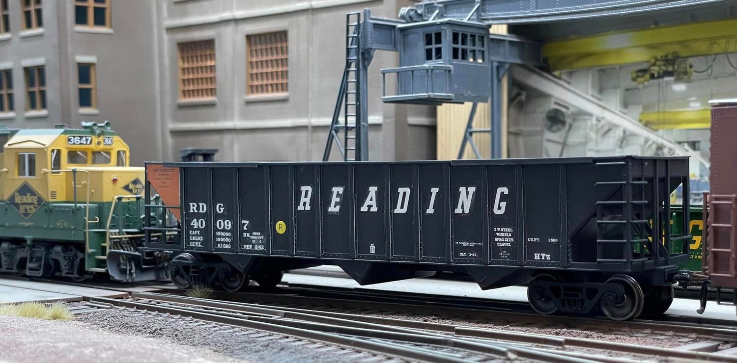 If you Model the Joanna Turn - Coal Train, from Joanna to Bethlehem PA on your layout these iconic coal hoppers will look awesome behind a four unit, all green RDG GP40-2 lash-up.