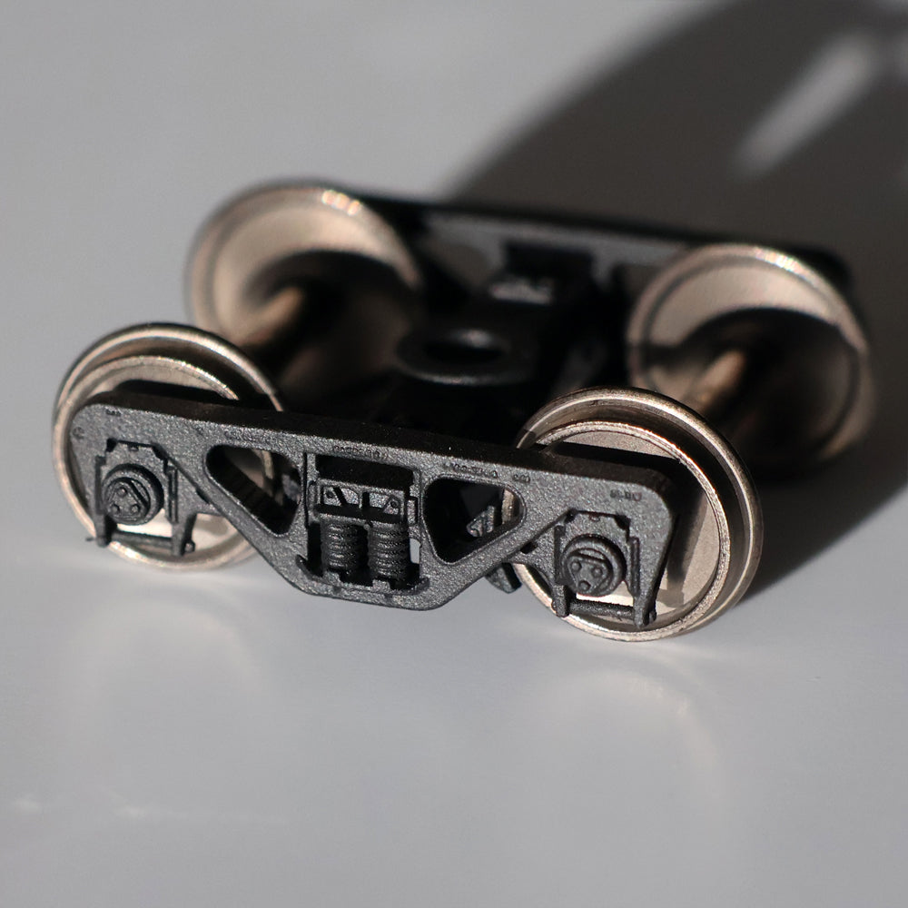 Package contents: (1) pair of ready-to-run trucks with semi-scale (code 88) nickel silver wheelsets and brake detail.