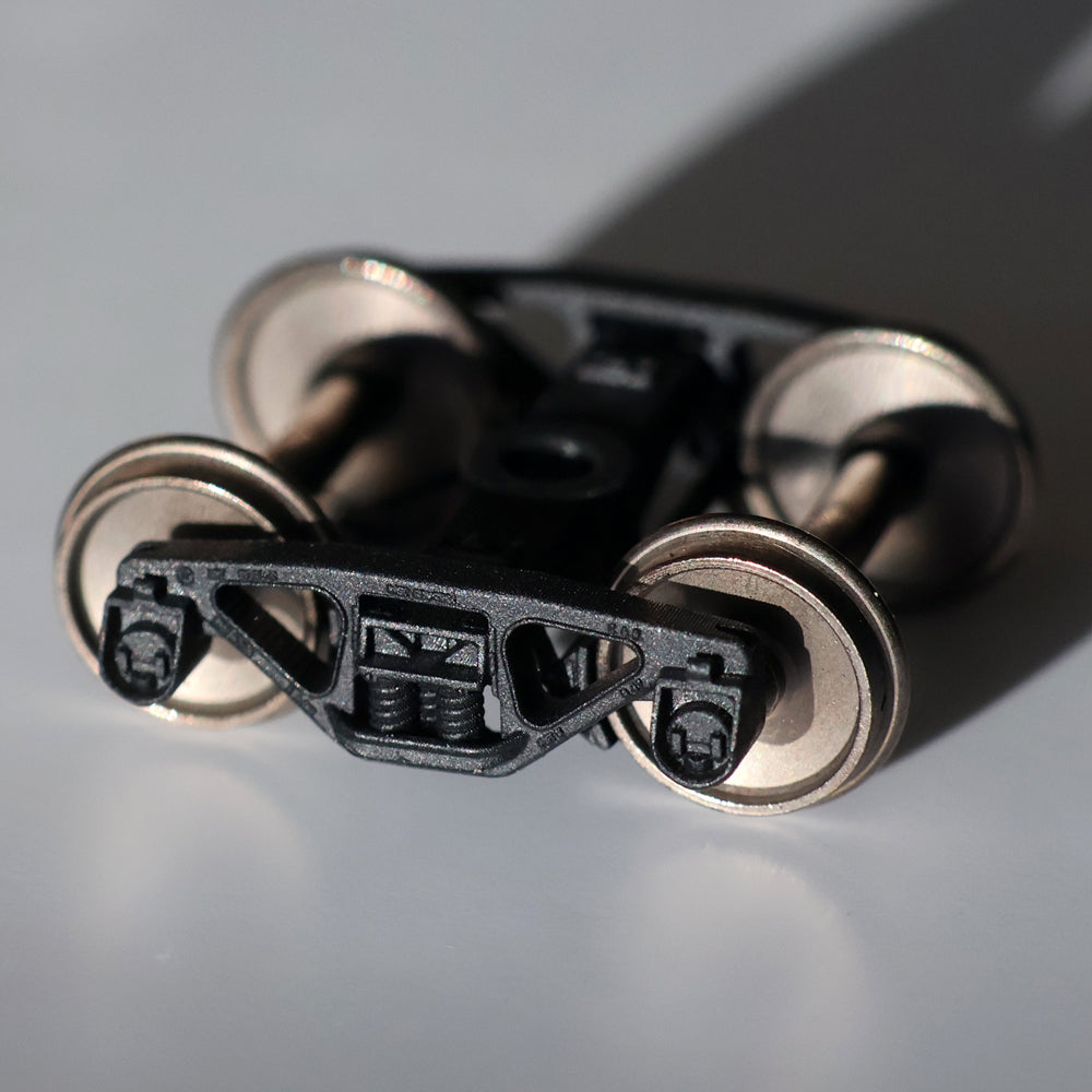 Package contents: (1) pair of ready-to-run trucks with semi-scale (code 88) nickel silver wheelsets and brake detail.