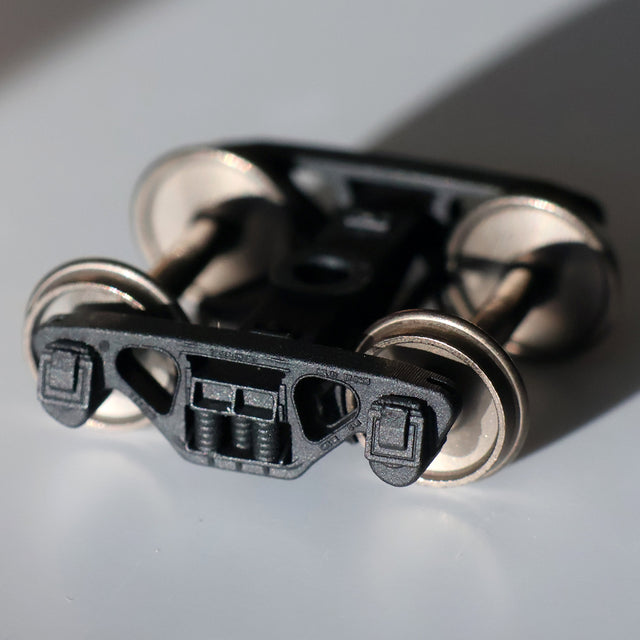 Package contents: (1) pair of ready-to-run trucks with semi-scale (code 88) nickel silver wheelsets and brake detail.