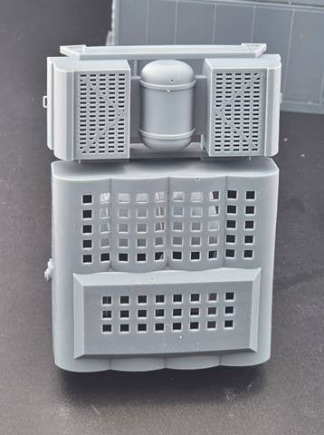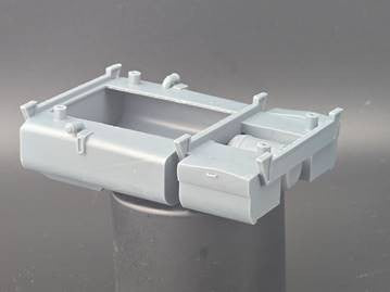 This tank is used to represent the EMD F3 or F7 in its de-skirted configuration. The tank screws to the frame and is sized to fit the Atlas O F3 and F7. It may be used with other brands as well. Mounting is done by through hole screws in the 4 studs to the bottom of the frame. The bottom of the tank is perforated for sound and also had fuel filler and gauges on each side.