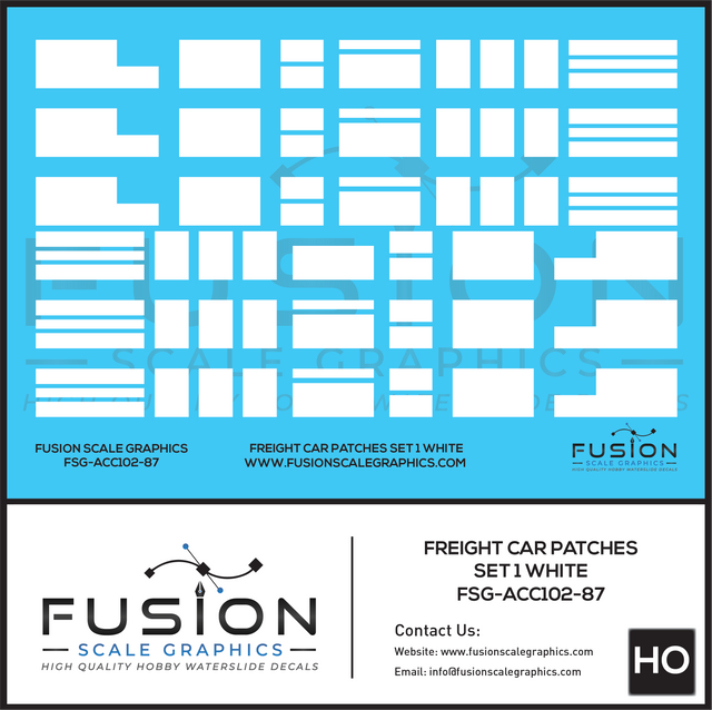 HO Scale Freight Car Patches Set 1 White Decal Set is backordered and will ship as soon as it is back in stock.