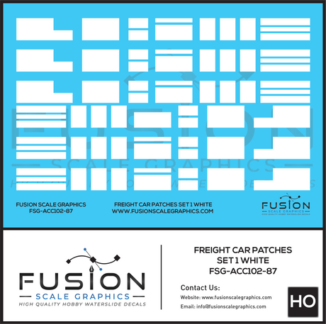 HO Scale Freight Car Patches Set 1 White Decal Set
