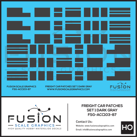 HO Scale Freight Car Patches Set 1 Dark Gray Decal Set