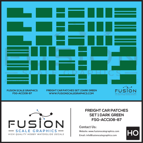HO Scale Freight Car Patches Set 1 Dark Green Decal Set