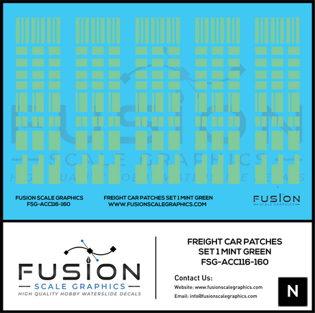 N Scale Freight Car Patches Set 1 Mint Green Decal Set