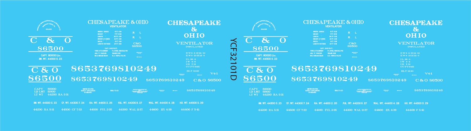 Decal set for Yuma Car and Foundry C&O Ventilated Boxcar XV V4-1 Kit.