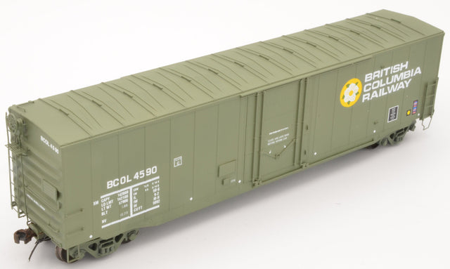 The Hawker Siddeley PGE/BCR 50' newsprint cars, numbered 4501-4600, were part of a series of boxcars used by the Pacific Great Eastern (PGE) and later the British Columbia Railway (BCR) during the 1960s. These cars were specifically designed for transporting newsprint and paper products. Manufactured by Hawker Siddeley in 1966, they were equipped with features suitable for their intended cargo, such as plug doors to maintain cargo integrity during transport. The cars were finished in various paint schemes, including the PGE map scheme and the BCR dogwood scheme, reflecting the branding changes as the railway evolved. These boxcars were part of a broader fleet that served the railway's freight transport needs during a period of significant growth and development in the region